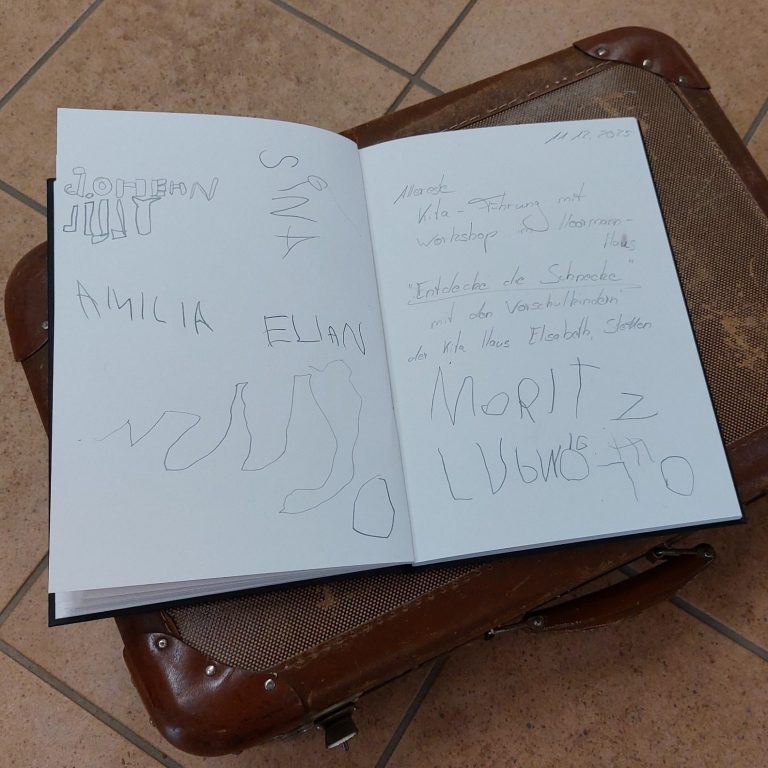 „Was ist das denn?“ Die Vorschulkinder der Kita Haus Elisabeth in Stetten machen große Augen. In der Tür steht Kunsthistorikerin Annika Treiber, und in der Hand hat sie Kurt, den Kunstkoffer. So einen haben die Kinder ja noch nie gesehen! Kurt ist aber auch etwas ganz Besonderes: er arbeitet im Hoormann-Haus in Bolanden und hilft Annika Treiber bei der Kunstvermittlung. Nachdem die Kinder gemeinsam Kurts Deckel aufgeklappt haben, können sie erforschen, was er ihnen mitgebracht hat: Bilder und eine Menge Skizzenbretter und Bleistifte.